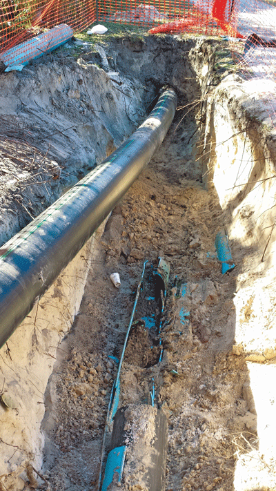 Tiếp theo là hoàn thành hai lỗ khoan song song dài 4.700 ft cho giai đoạn cuối của dự án. Ống sản phẩm bằng thép phủ epoxy có đường kính 36 inch có độ dày thành 1,25 inch. Các đường ống cần thiết để di chuyển dưới kênh vận chuyển đến một địa điểm trên bờ. Một dòng sẽ đóng vai trò là dòng chính, dòng còn lại đóng vai trò là dòng cung cấp.
