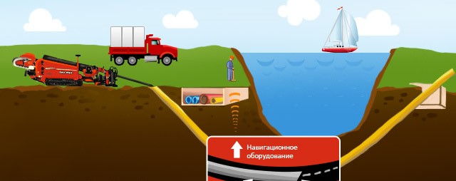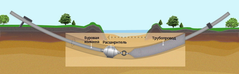 Phương pháp khoan định hướng ngang (khoan định hướng) thể hiện những khả năng tuyệt vời. Ứng dụng của phương pháp khoan ngầm này có thể tạo ra các giếng nghiêng nằm ngang với đường kính lên đến 2 mét và chiều dài lên đến 2000 mét. Việc chuyển tiếp được thực hiện bằng phương pháp khoan định hướng trong 3 giai đoạn chính: khoan giếng dẫn, khoan mở rộng và thực kéo qua dây ống dẫn. Phương pháp khoan đặt ống ngầm vượt sông này có những hạn chế riêng về đặc tính của đất nơi giếng được khoan, tuy nhiên, nó đã được sử dụng rộng rãi ở Nga trong việc xây dựng các đường giao nhau giữa đất và nước.