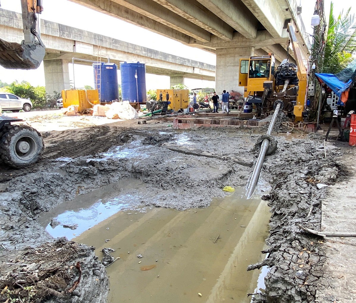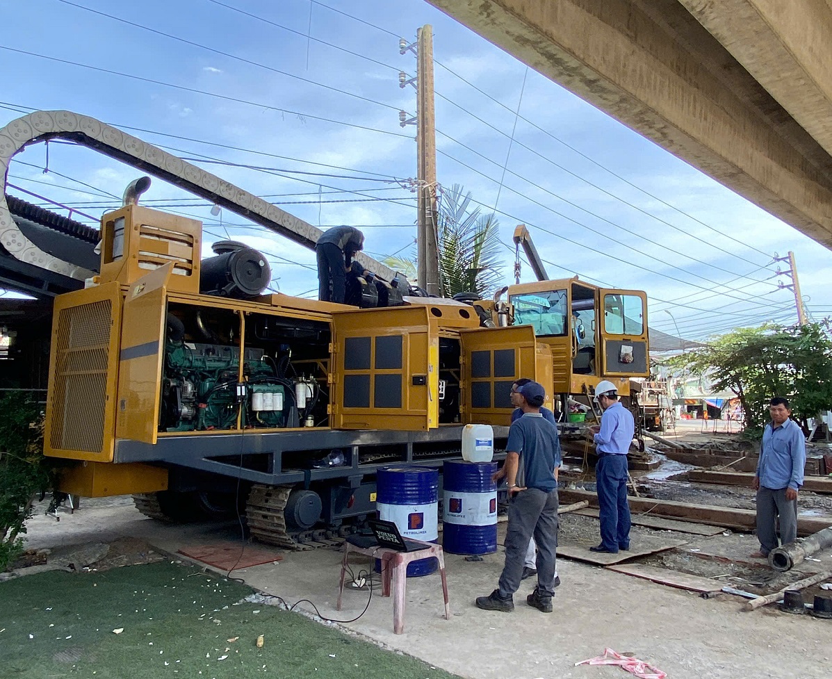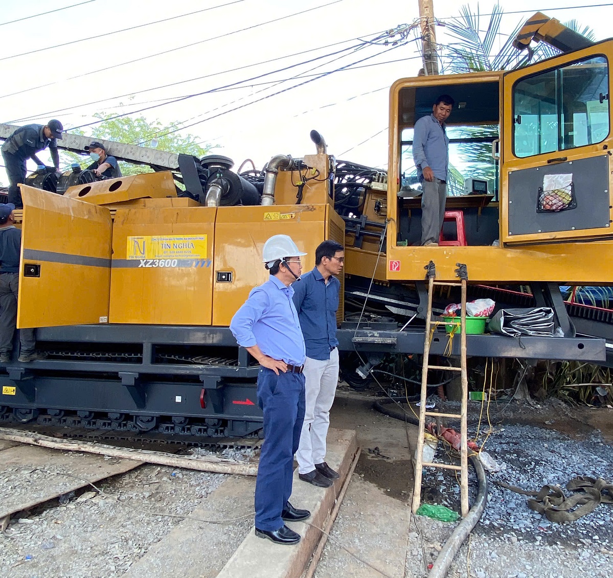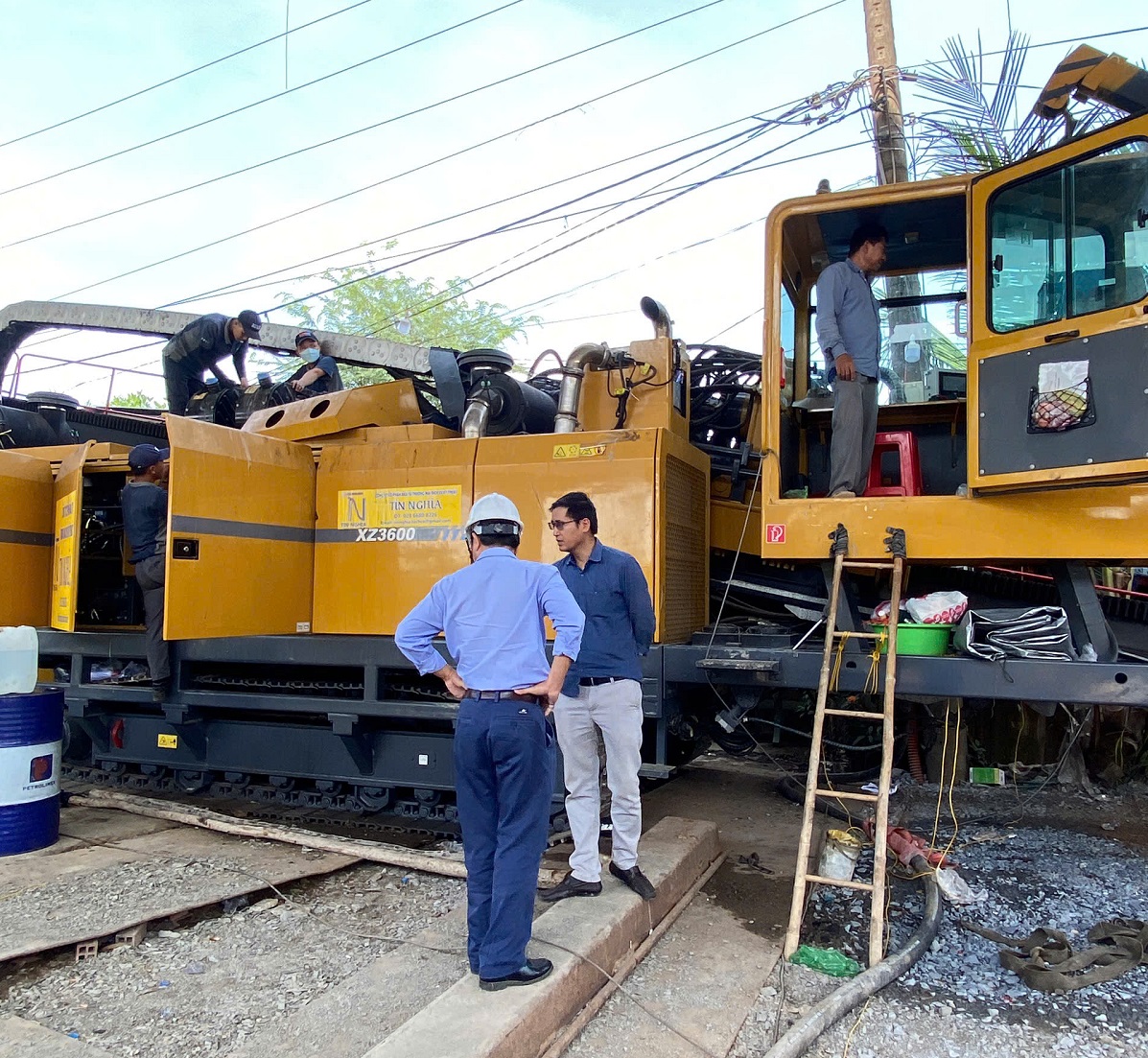 Cùng chiêm ngưỡng " QUÁI VẬT" Máy Khoan Định Hướng Ngang Hạng Nặng Xz3600 đang được vận hành triển khai dự án khoan ngầm kéo ống nước HDPE có kích thước D850 với chiều dài lên đến 800m băng qua đường quốc lộ và sông Vàm Cỏ Tây tại tại Tỉnh Long An. Dự án hiện đã xong công đoạn khoan ngầm thông lỗ và bắt đầu đến giai đoạn kéo ống vào lỗ ngầm.