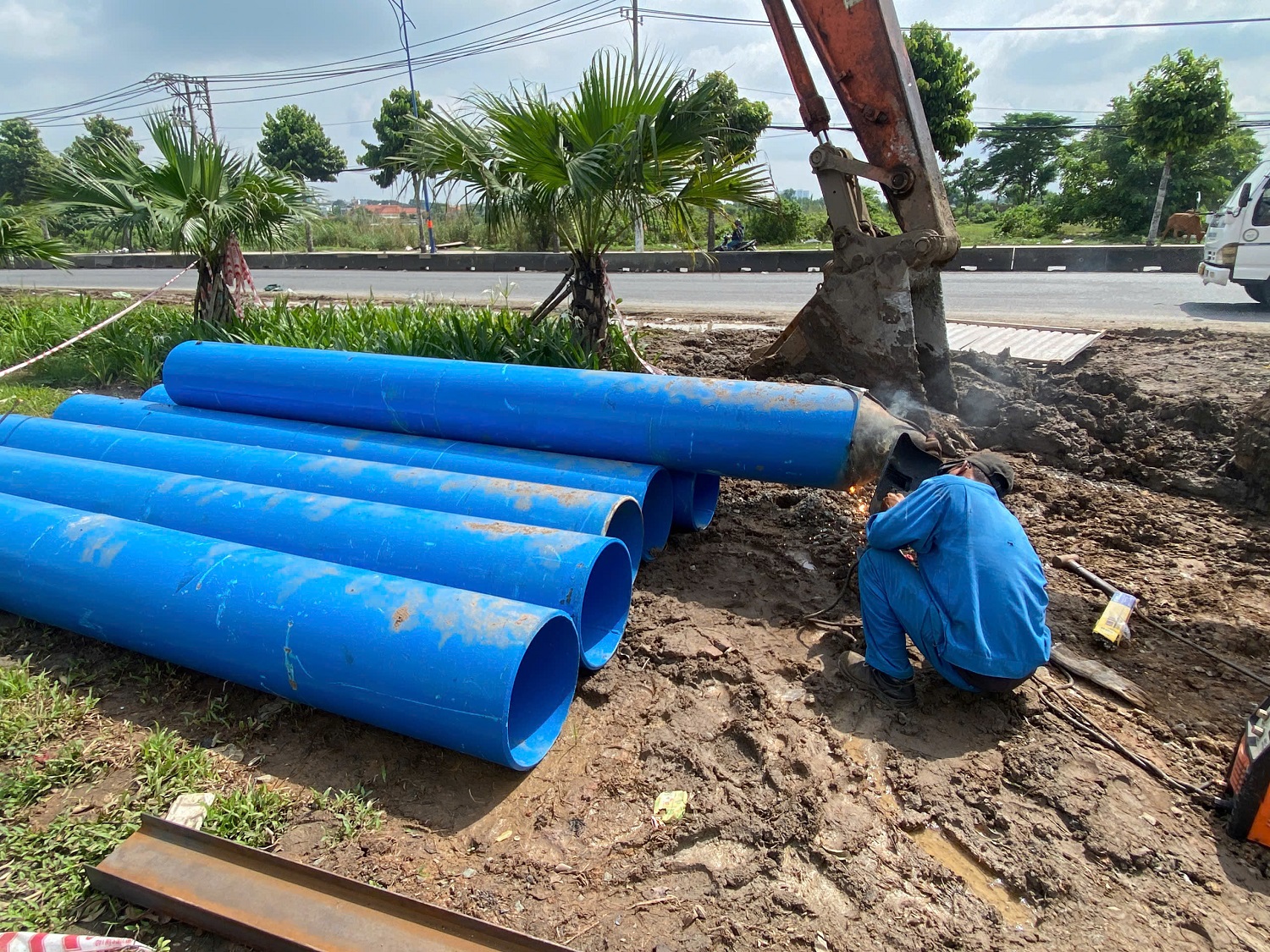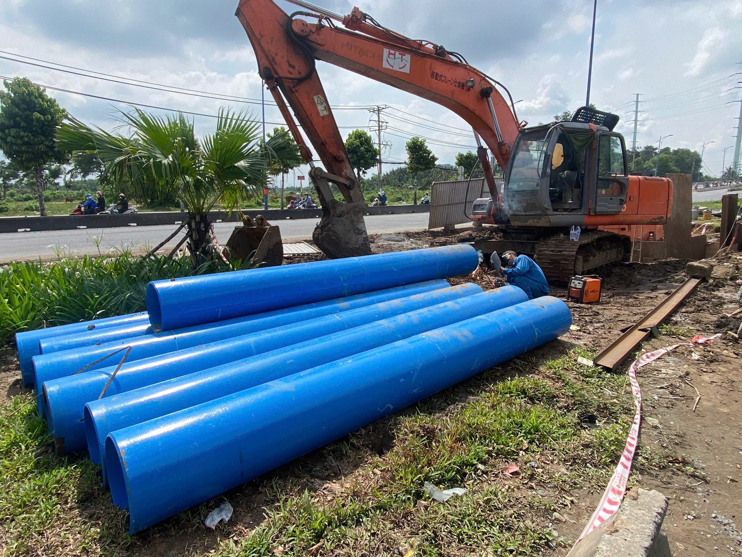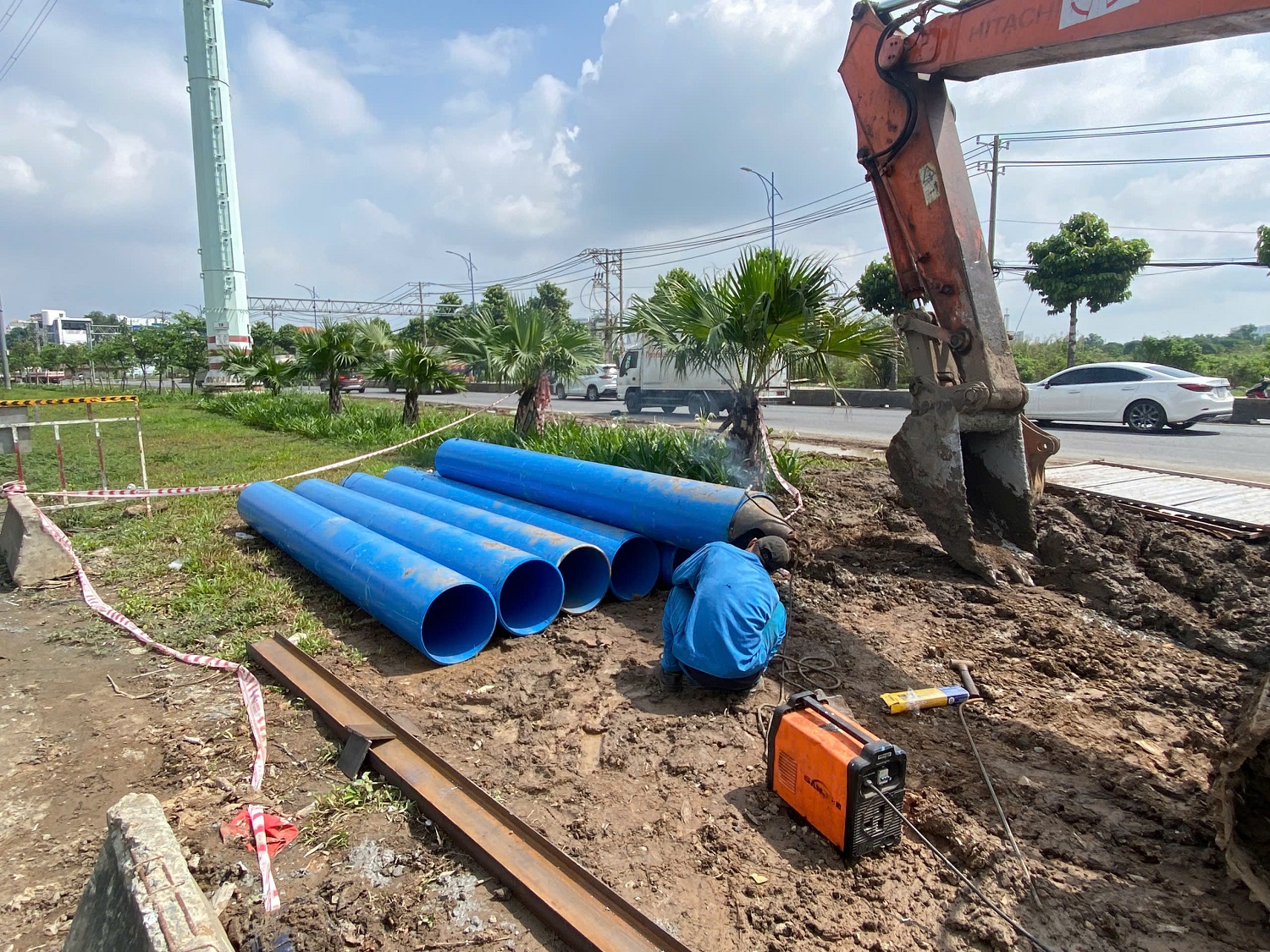 Minh Phương đang thi công thực hiện dự án khoan kích ngầm kéo ống thép qua đường. Công trình kéo ống thép có chiều dài 28m qua đường Đồng Văn Cống - TP. Thủ Đức với kích thước ống thép DN400 với chiều sâu 4m5.