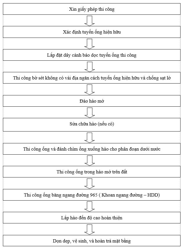 1. Trình tự thi công: khoan ngầm, khoan ngầm kéo ống, khoan kéo ống thép, khoan kéo ống qua sông, khoan kéo ông qua đường, khoan ngầm robot kéo đường ống dẫn khí, khoan ngang đường kéo ống dẫn nước.
