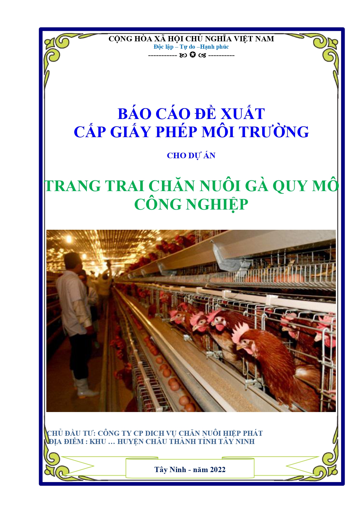 Báo cáo xin cấp giấp phép môi trường cho dự án đầu tư trang trai chăn nuôi gà quy mô công nghiệp phòng lạnh