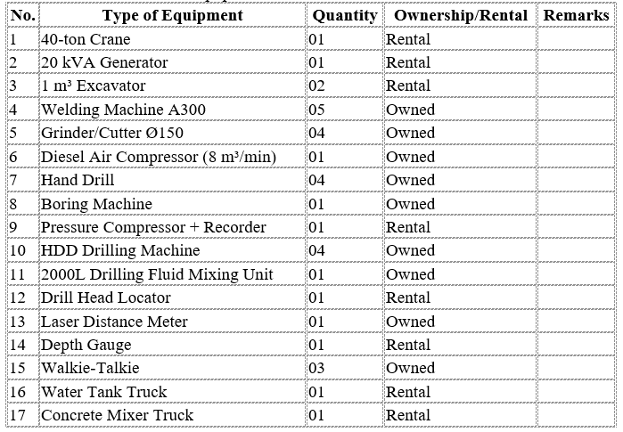 The purpose of this document is to provide the methodology for the Contractor to execute and control the HDD drilling works across roads and canals, and the pulling of 16” steel pipes inside 20” steel casing pipes, under the Project “Fuel Pipeline System for Aircraft from the Upstream Port to Long Thanh International Airport.”