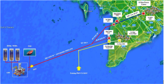- Approximately 94 km of 30-inch onshore pipeline from An Minh Landfall Station to O Mon Gas Distribution Center (GDC) at Can Tho Province.