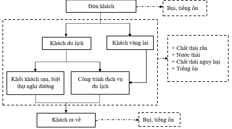 + Sau khi sử dụng các dịch vụ nghỉ dưỡng tại dự án, du khách sẽ ra về. Khách ra về sẽ phát sinh ra bụi và tiếng ồn.