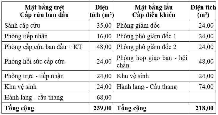 Bảng 1‑4: Hạng mục Khoa Cấp cứu trung tâm
