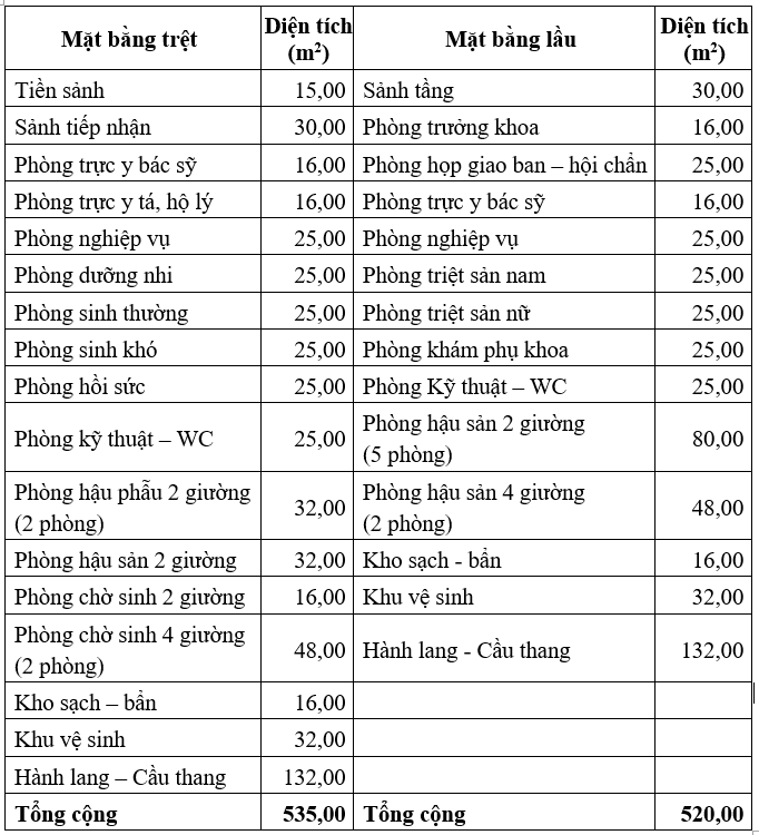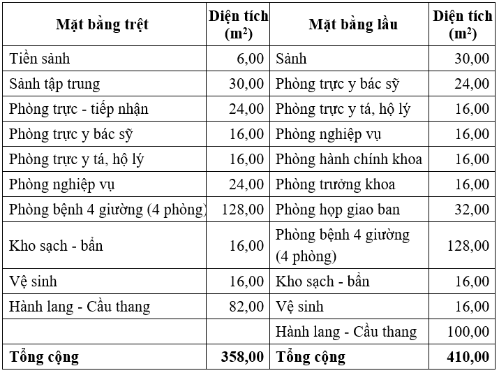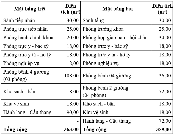 Bảng 1‑5: Hạng mục Khoa Ngoại