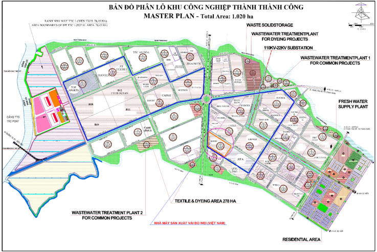 - Phía Đông: Giáp với Công ty TNHH Dệt Jifa Thành An (Việt Nam) hoạt động sản xuất vải dệt kim, trong quy trình sản xuất có thực hiện công đoạn nhuộm;