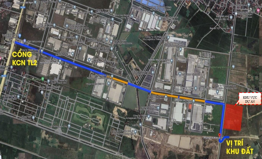 - Khu dân cư gần nhất: Dự án nằm trong KCN nên không tiếp giáp với khu dân cư tập trung. Khoảng cách từ dự án tới khu dân cư gần nhất (dân cư thuộc xã Hưng Long) khoảng 250m về phía Nam; khu dân cư phường Phùng Chí Kiên cách dự án khoảng 300m về phía Bắc,.…