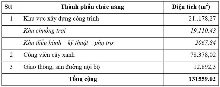 Dự án trang trại được xây dựng trên diện tích phù hợp với quy hoạch nông nghiệp của địa phương, đáp ứng các tiêu chuẩn chăn nuôi theo hướng công nghiệp khép kín. Quy mô hoạt động: