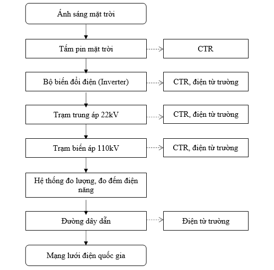 Báo cáo đề xuất cấp giấy phép môi trường Nhà máy điện mặt trời; trạm biến áp và đường dây dẫn 110KV. Sản xuất điện từ nguồn năng lượng mặt trời có công suất 30 MWp với đường dây truyền tải điện 110 kV từ nhà máy đến lưới điện quốc gia dài 8,36 km. Sản lượng điện hằng năm khoảng 43.195 MWh/năm