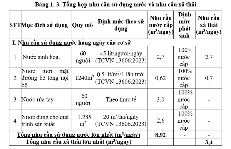 ➢Nhu cầu sử dụng nước và nhu cầu xả thải