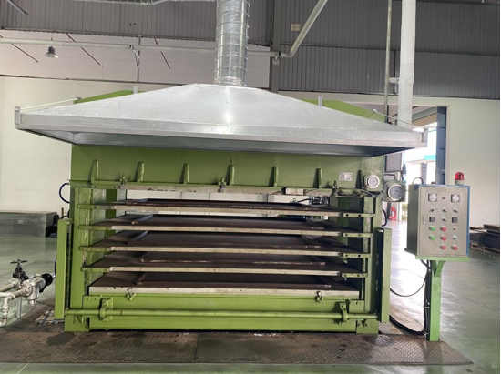 ‐ Ép thủy lực: Sau khi cắt, tấm cao su được đặt vào máy ép thủy lực nhằm tăng độ bền cho tấm cao su. Nhiệt được cấp từ lò hơi trong suốt ca làm việc để gia nhiệt cho máy. Quá trình ép thủy lực được thực hiện 2 lần nhằm tăng độ bền, độ dẻo cho sản phẩm.