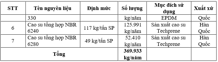 Báo cáo đề xuất cấp Giấy phép môi trường Nhà máy sản xuất tấm đệm cao su EPDM công suất 768 tấn/năm. Tấm đệm cao su TECHPRENE công suất 1.080 tấn/năm.