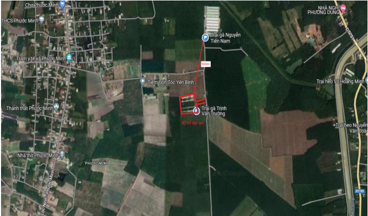 - Dự án đảm bảo được các tiêu chí khoảng cách theo Thông tư số 23/2019/TT-BNNPTNT như sau: cách xa khu dân cư bán kính 1km, cách chợ Phước Minh và trường THCS Phước Minh 1,5km về hướng Tây Bắc, cách Thánh thất Phước Minh 1,2km về hướng Tây, cách Hồ Dầu Tiếng 2,5km, trại gà Nguyễn Tiến Nam 500m về hướng Bắc; cách trại heo Nguyễn Văn Đoài 1,7km về hướng Đông; xung quanh khu vực dự án chủ yếu là đất trồng cây cao su và cây mì, có một vài hộ dân làm rẫy sinh sống, khoảng cách từ dự án đến nhà dân gần nhất là 200m. Theo quan sát xung quanh dự án không có vườn quốc gia, khu dự trữ thiên nhiên, khu dự trữ sinh quyển; nhà thờ, đền, chùa; các khu nghỉ dưỡng, vui chơi, giải trí; các khu di tích lịch sử, văn hóa, di sản văn hóa đã xếp hạng.