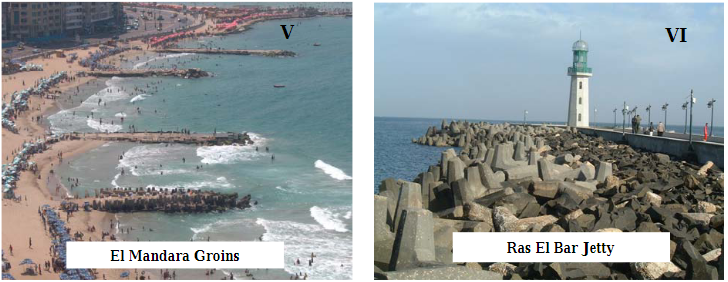 Hình 1: Một số ví dụ về các công trình bờ biển trong khu vực bờ biển Ai Cập.