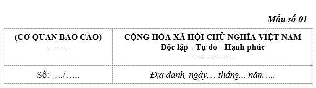 | CƠ QUAN BÁO CÁO | CỘNG HÒA XÃ HỘI CHỦ NGHĨA VIỆT NAM |